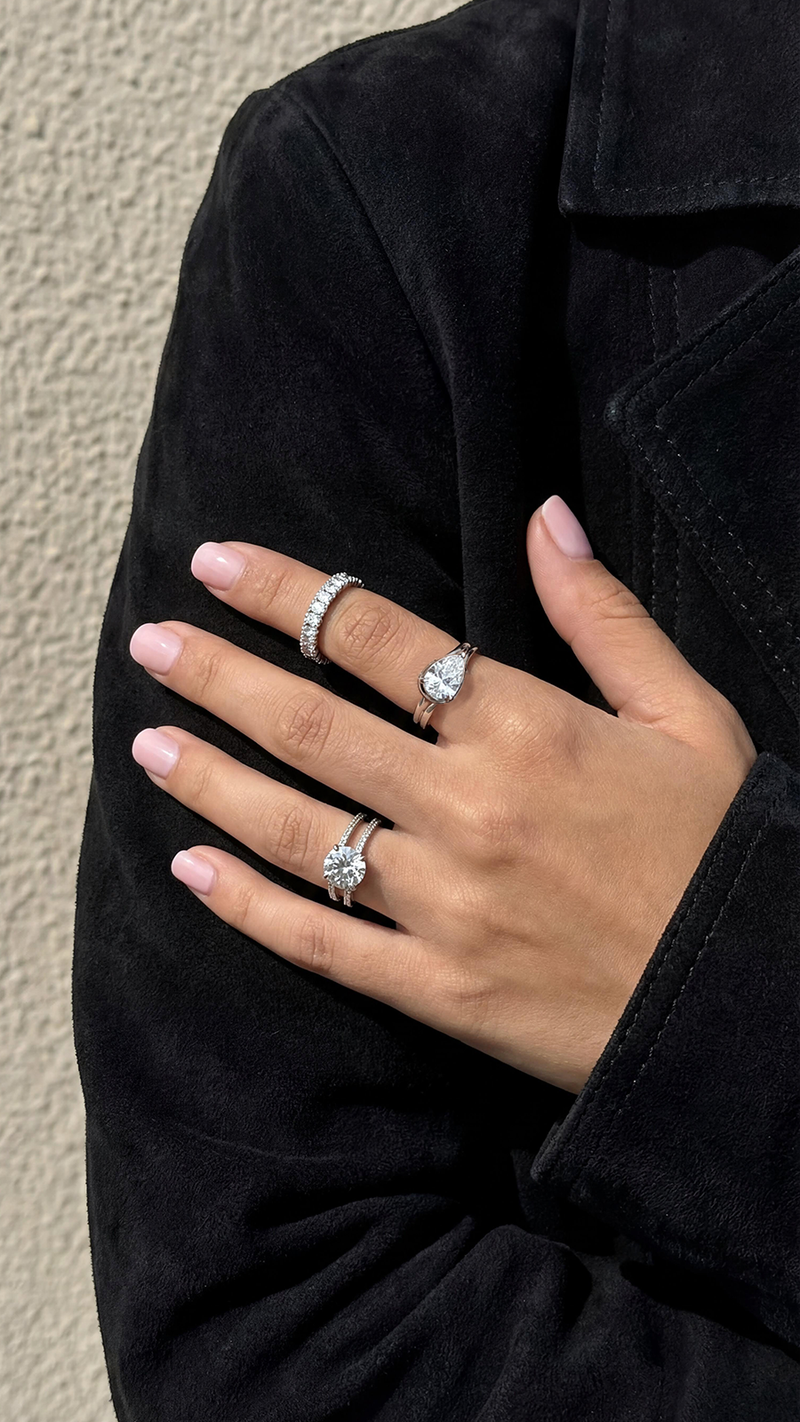 S925 Sterling Silver Plated 18K Rose Gold Dainty Diamond Stacker Ring