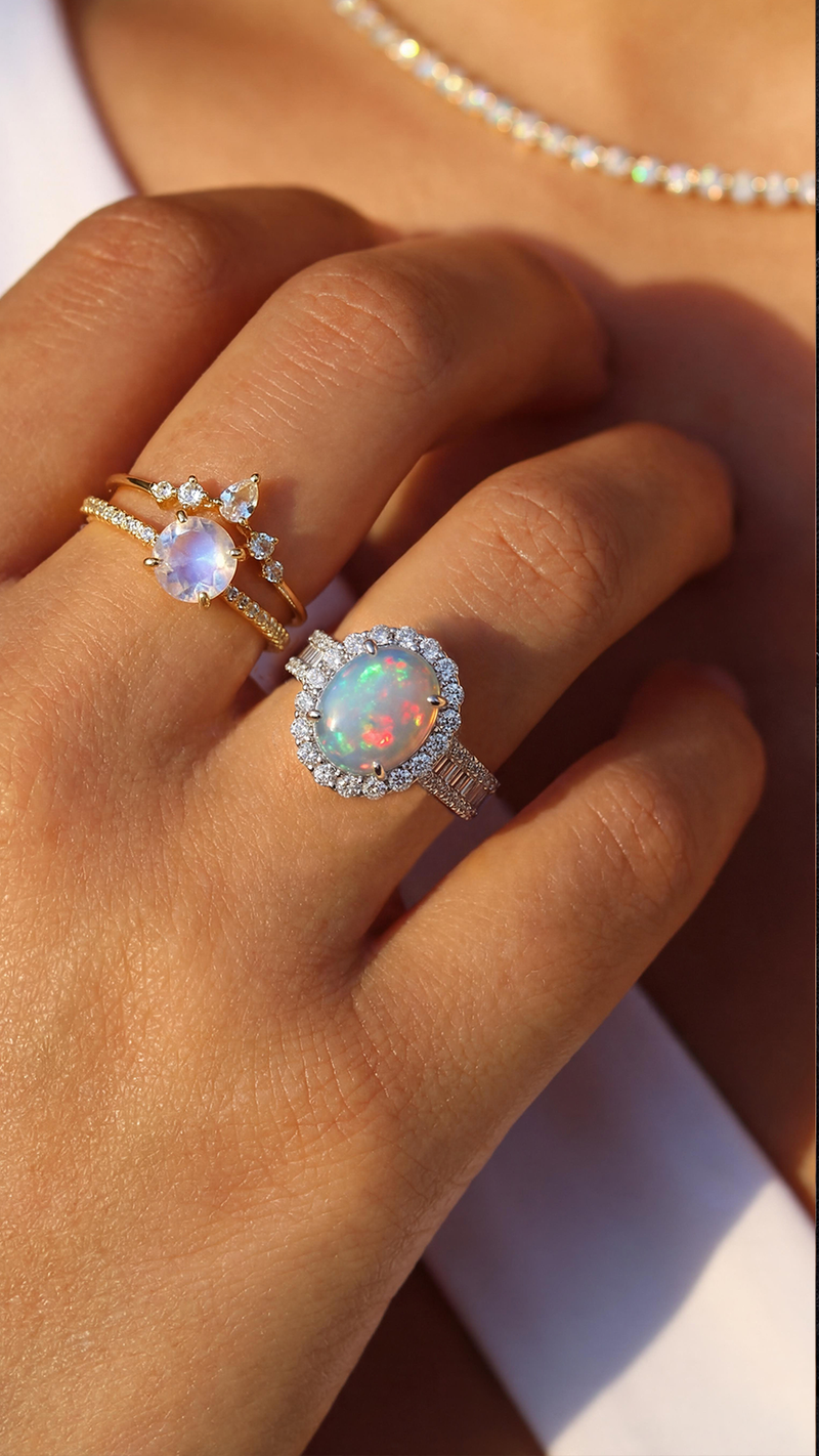 S925 Sterling Silver Plated 18K Rose Gold Moonstone Ring