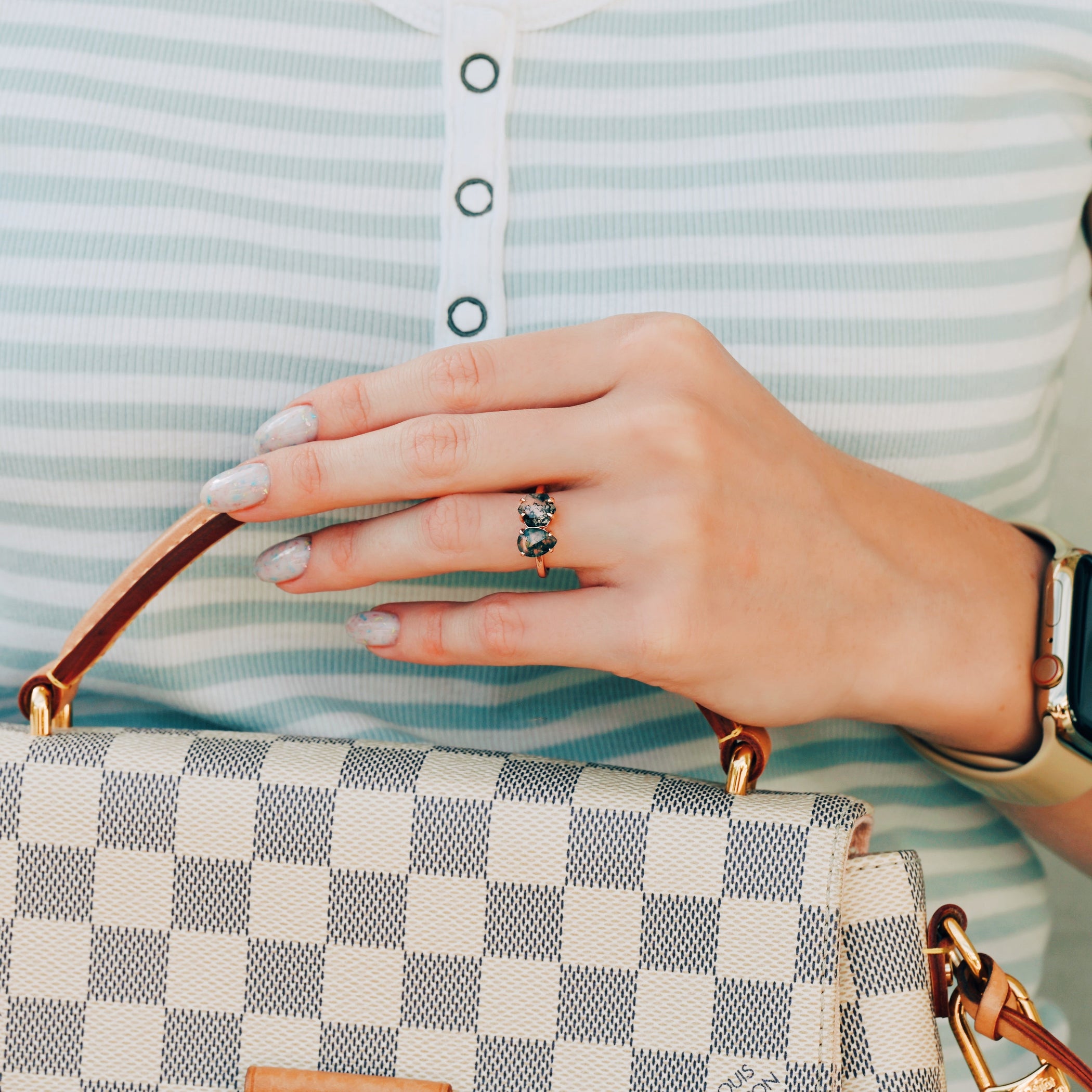 'Toi Et Moi' Green Moss Agate Ring- 14K Rose Gold Vermeil