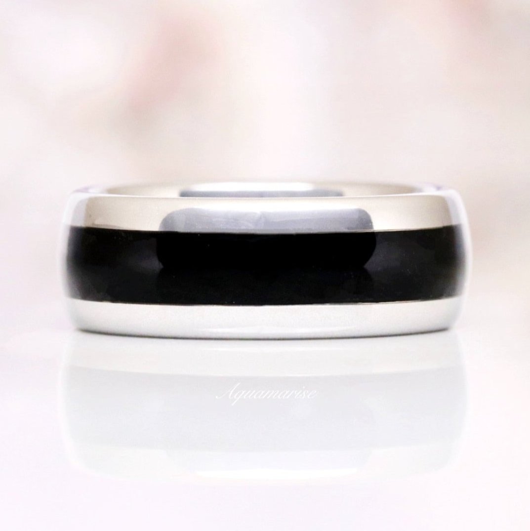 Blue Fire Opal Wedding Band- 8MM Black Tungsten
