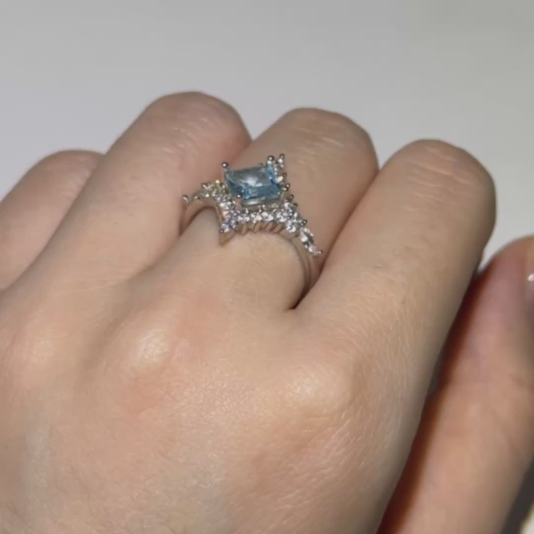 Crescent Engagement Ring Set - Sterling Silver