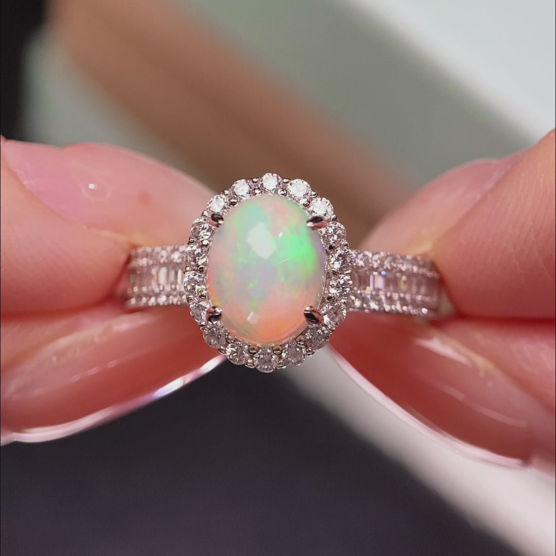 18K Gold Radiant Oval-Cut Natural Opal Ring