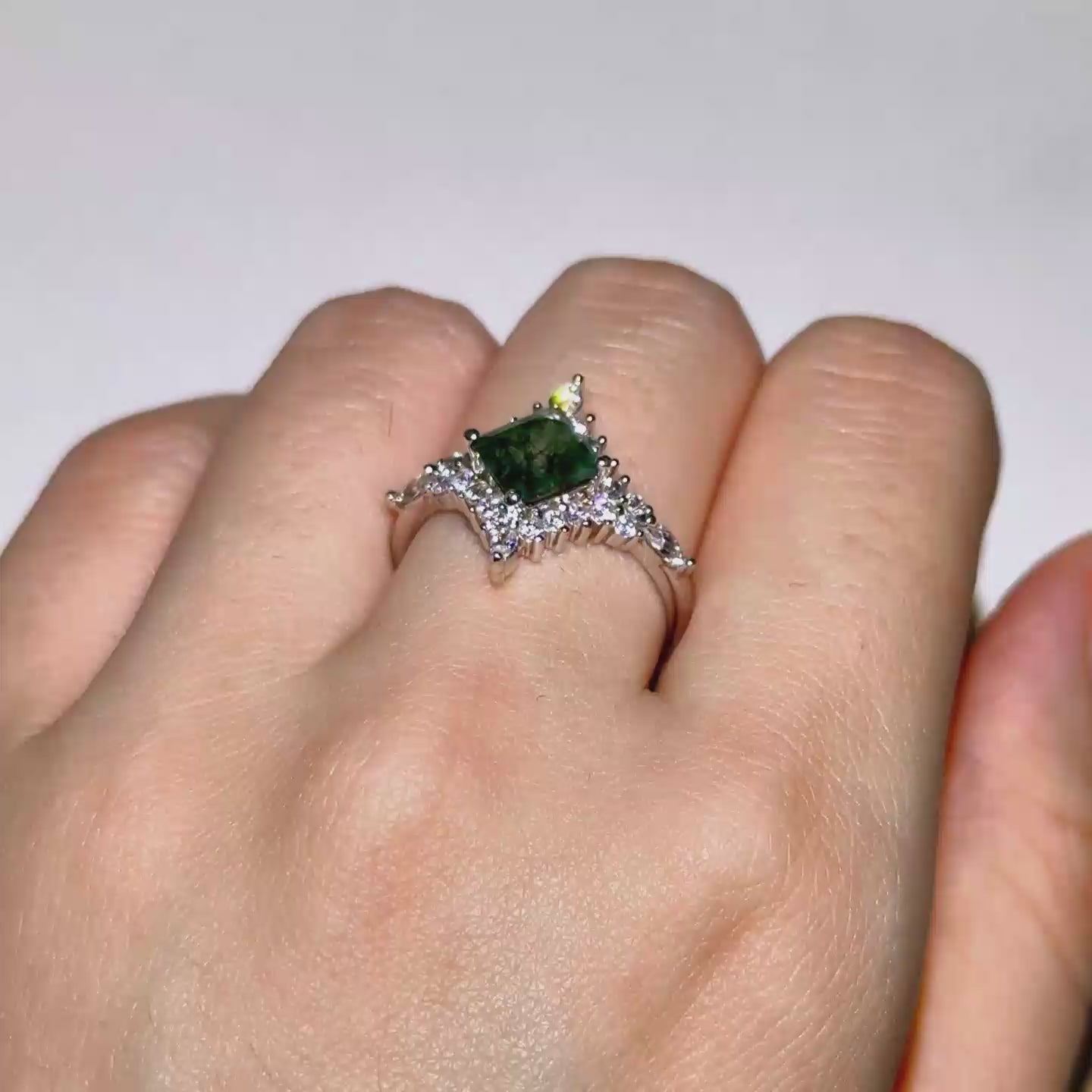 925 Sterling Silver Moss Agate Celestial Star Ring