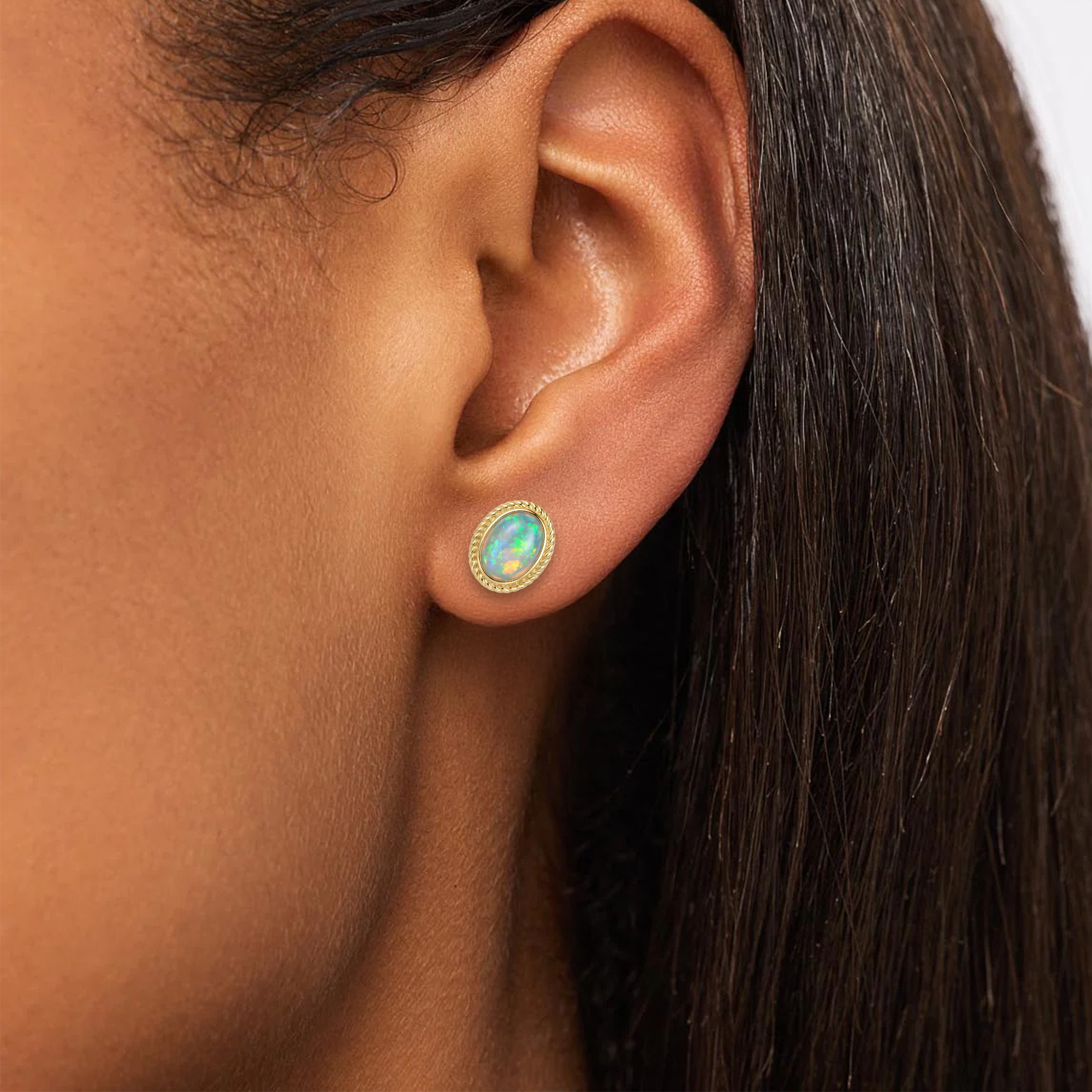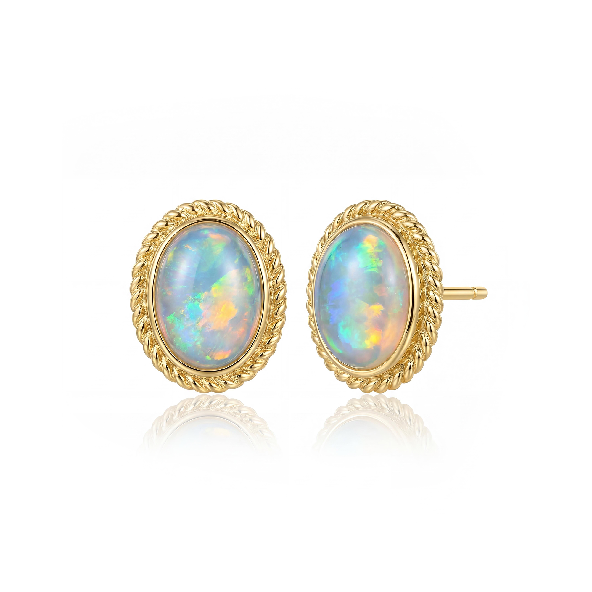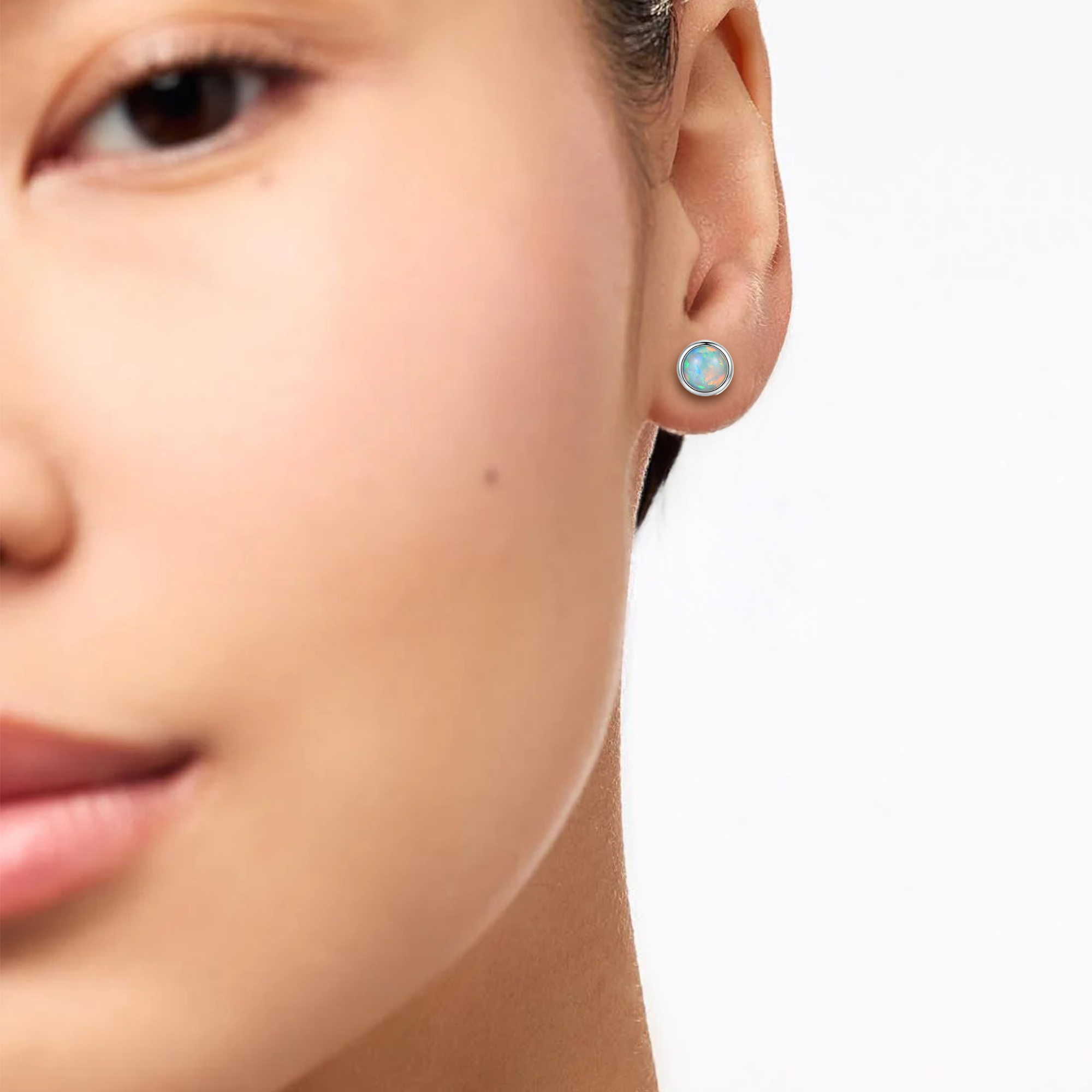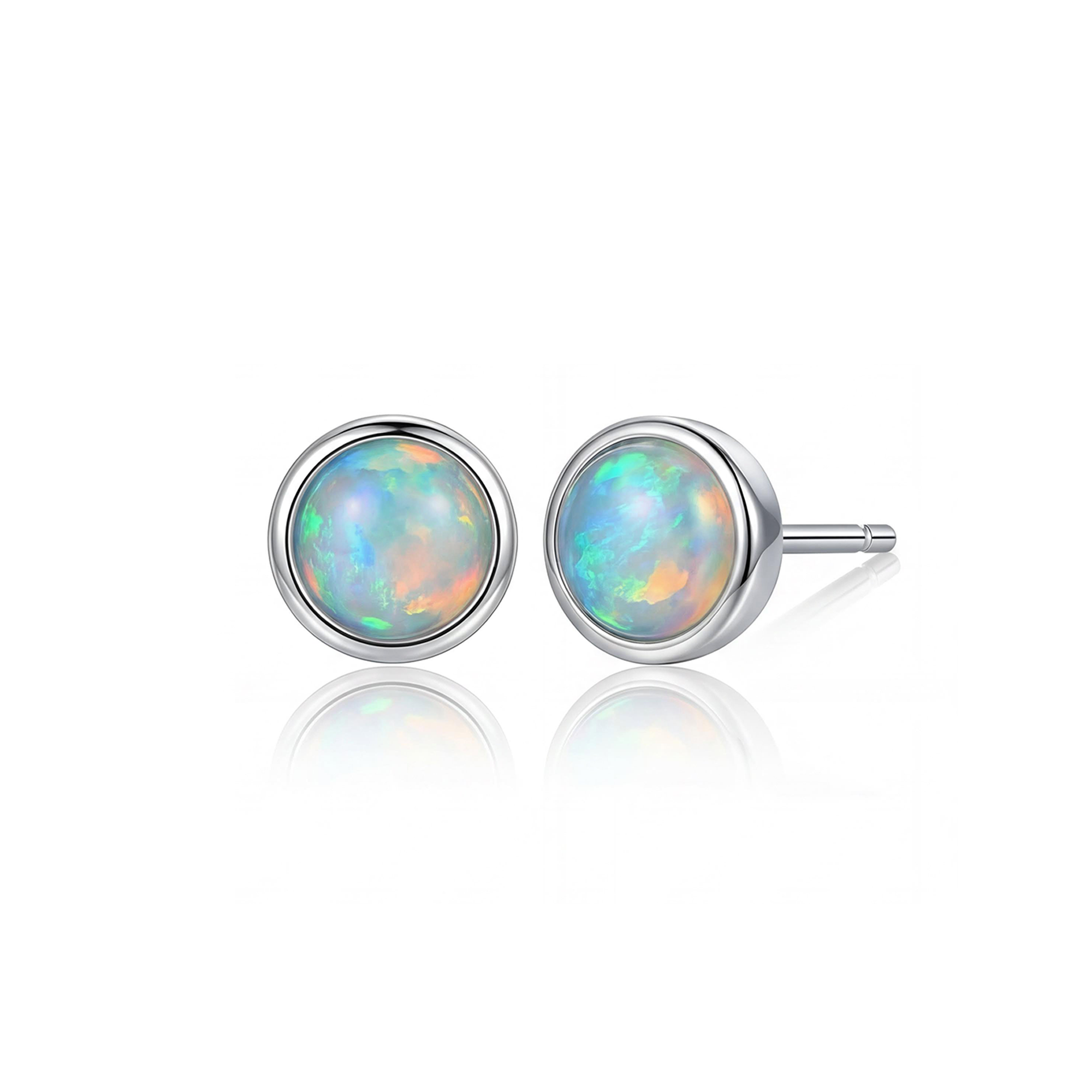 Natural Opal Round Stud Earrings in 925 Sterling Silver