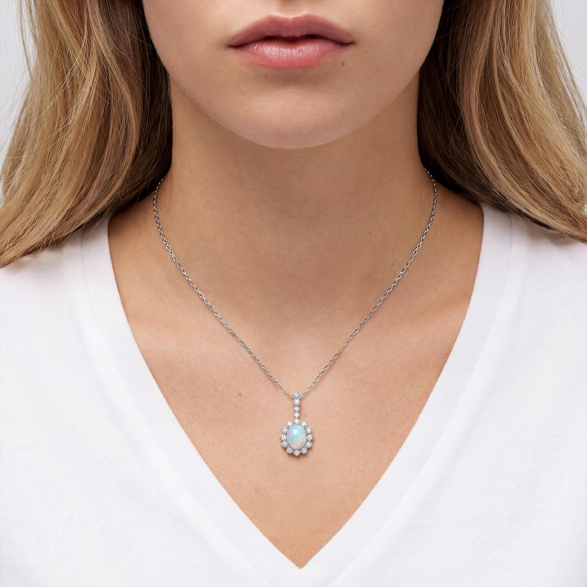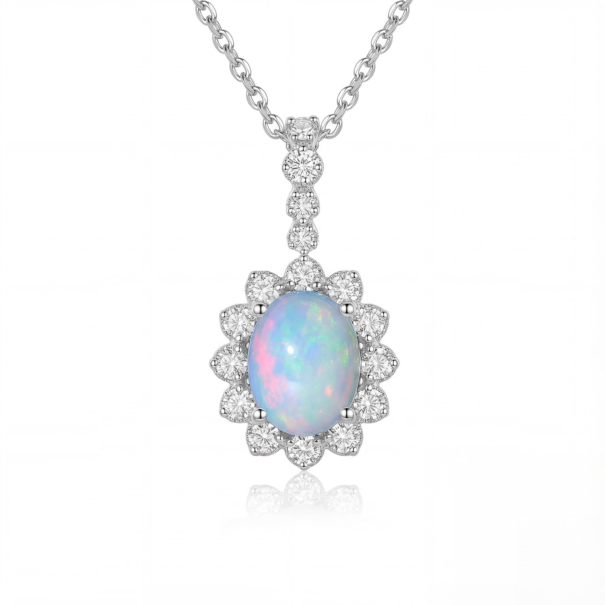 Oval Opal Halo Pendant in 925 Sterling Silver