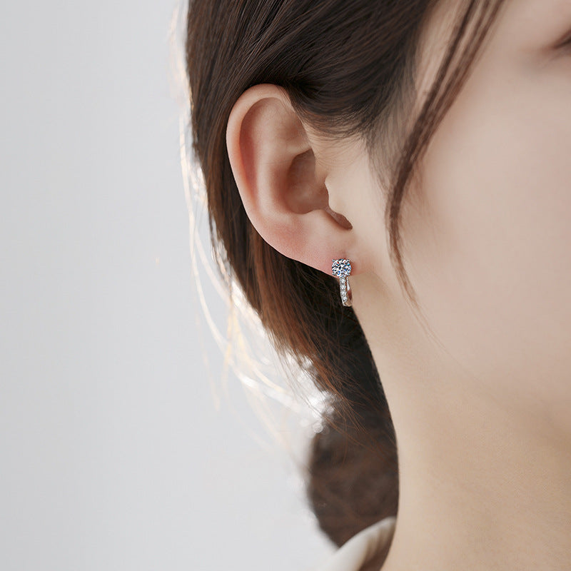 925 Sterling Silver U-Shape Sparkle Hoop Earrings