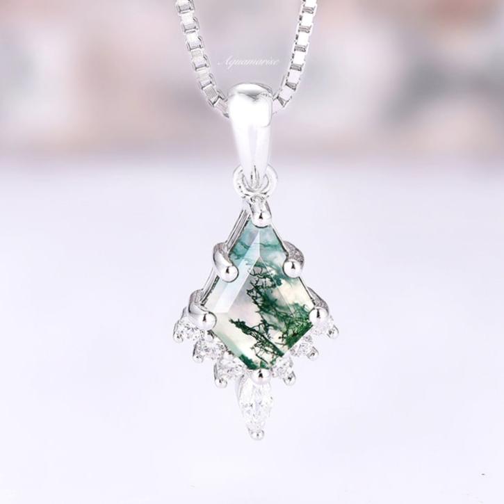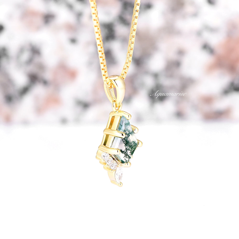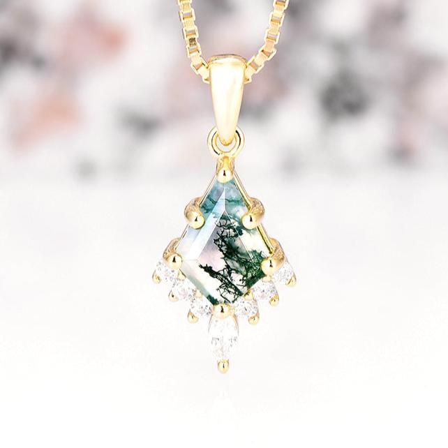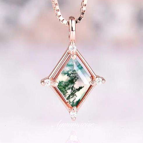 Unique Kite Green Moss Agate Necklace- 14K Rose Gold Vermeil