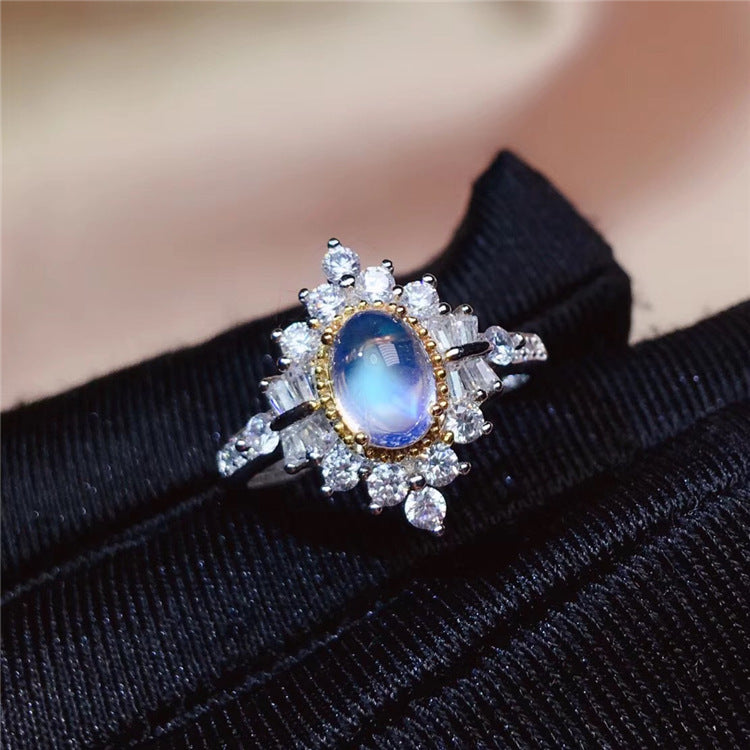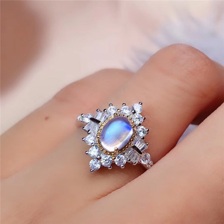 S925 Sterling Silver Plated 18K Rose Gold Moonstone Ring